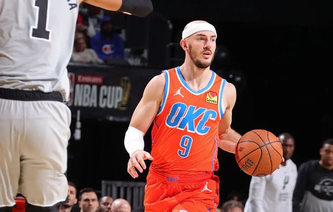 本场比赛中,雷霆虽然最终有些遗憾地输掉了比赛,但是球队的替补外线大闸亚历克斯-卡鲁索(Alex Caruso)的表现其实还是相当不错的。卡鲁索全场出场24分04秒,投篮9中5,三分线外3中1,得到了11分8篮板3助攻3抢断的全面数据,其中还包括了4个前场篮板,还有5次犯规,正负值更是达到了全场最高的+22。卡鲁索在进攻端虽然没有什么太多的球权,但是他还是靠着自己的努力得到了大量的前场篮板,他也通过各种方式拿下了不少分数。不仅如此,卡鲁索也能够在传球和组织方面起到一定的作用。作为球队的外线大闸,卡鲁索在防守端的表现同样是相当突出的,他的防守侵略性实在是太高了,能够给对手制造巨大的威胁。卡鲁索在攻防两端的表现都是值得肯定的,只是球队的整体状态还是差了一些,卡鲁索的努力也没有办法帮助球队扭转局面。